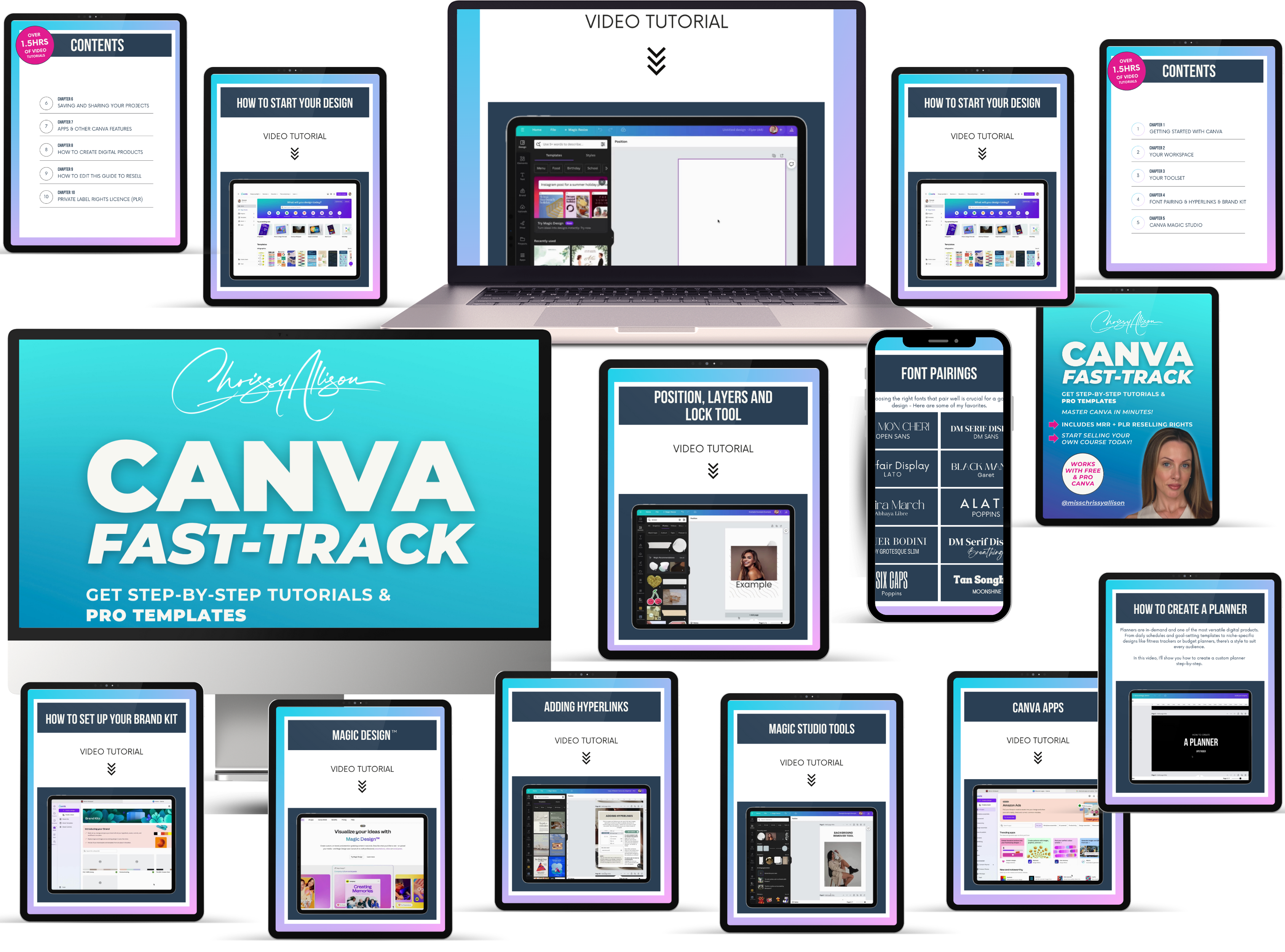 1.5+ hours of step-by-step video tutorials (works with free or pro Canva)